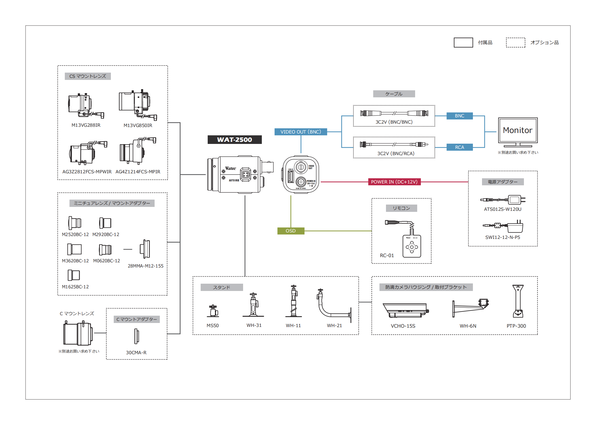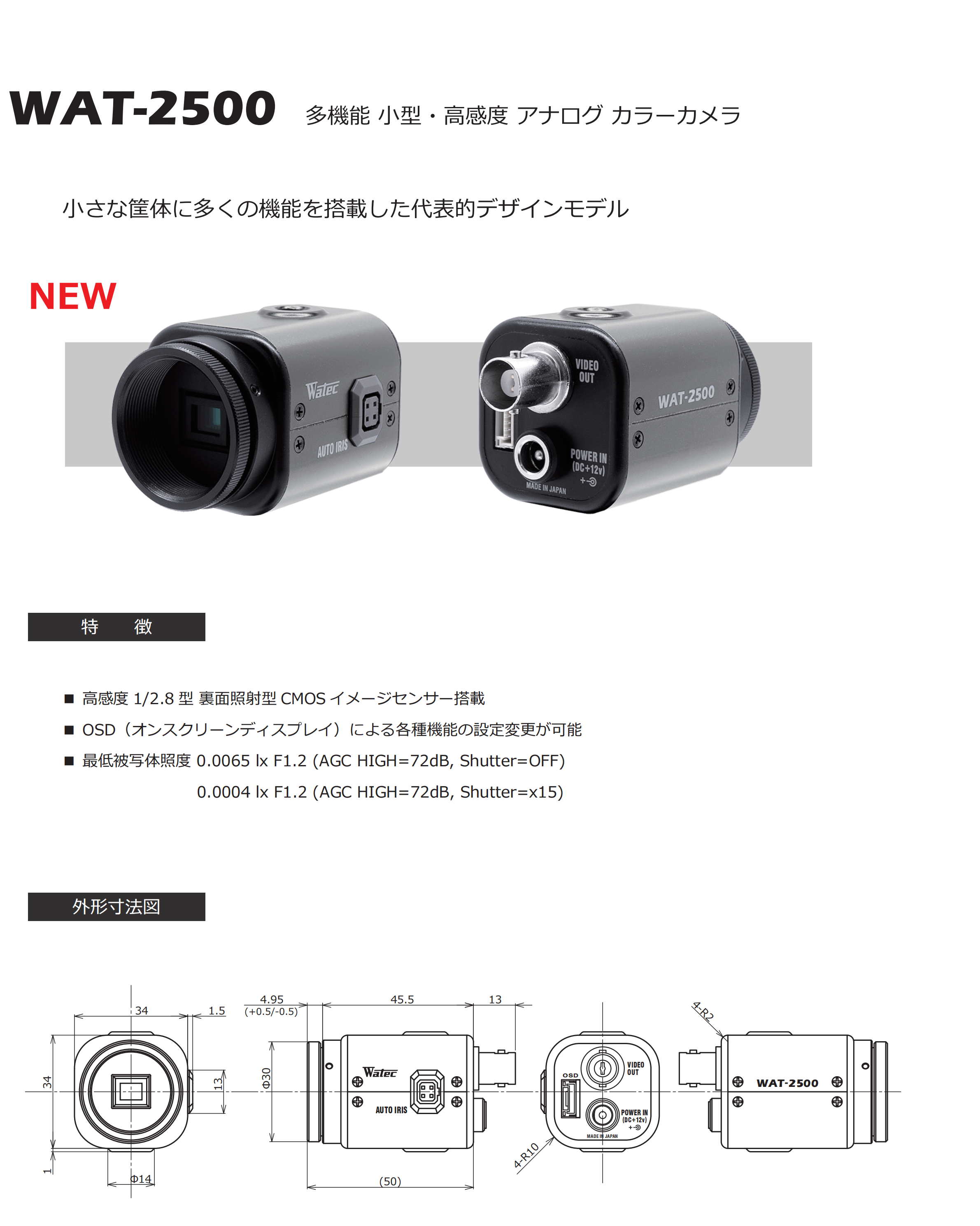 > 新 WAT-2500 1/2.8型 多功能 小型·高感度 模拟 彩色相机