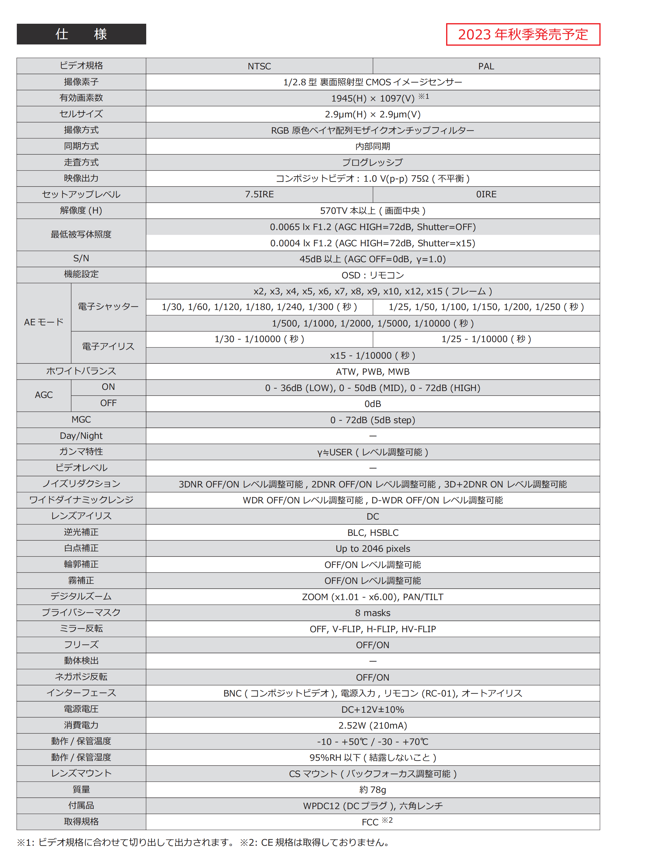 最低照度:0.02Lux(F1.2,AGC高增益模式)