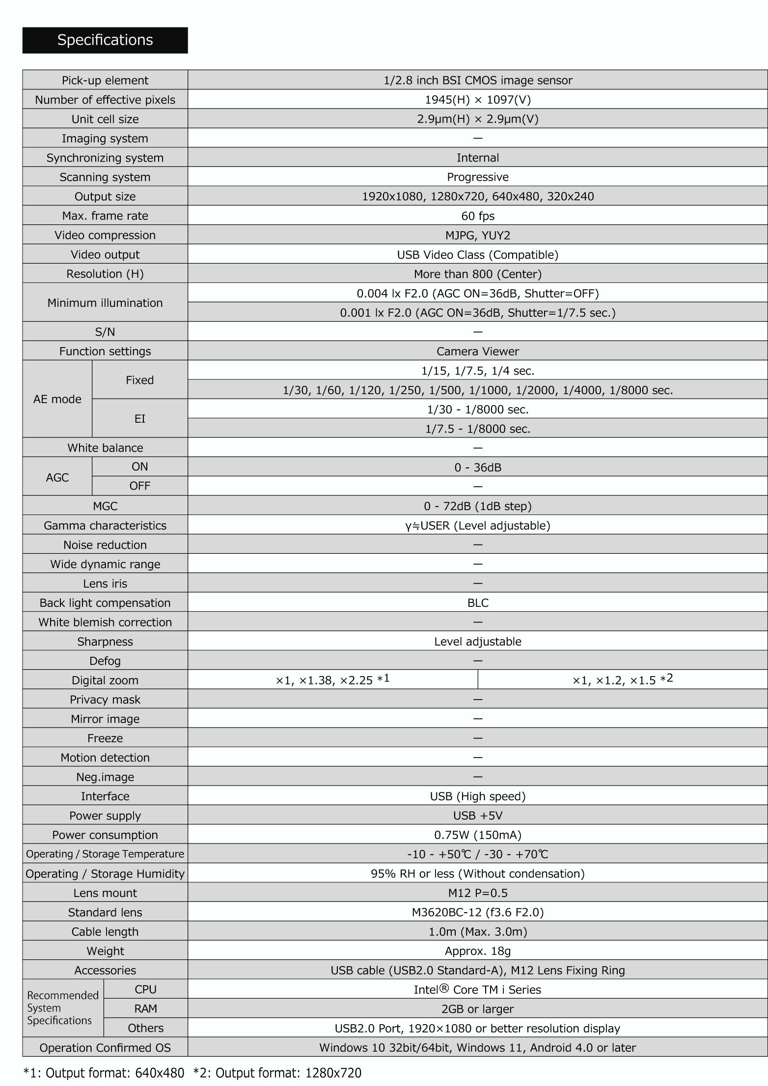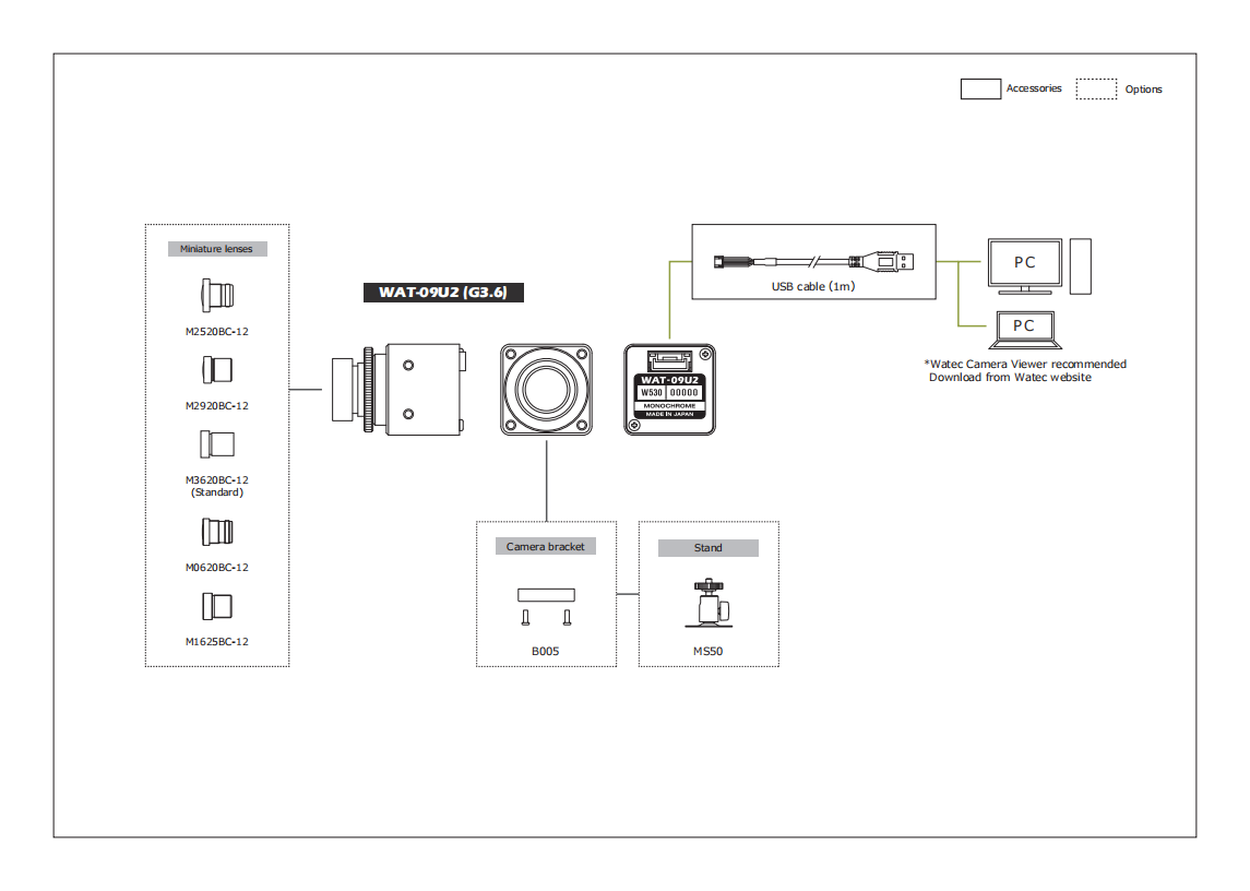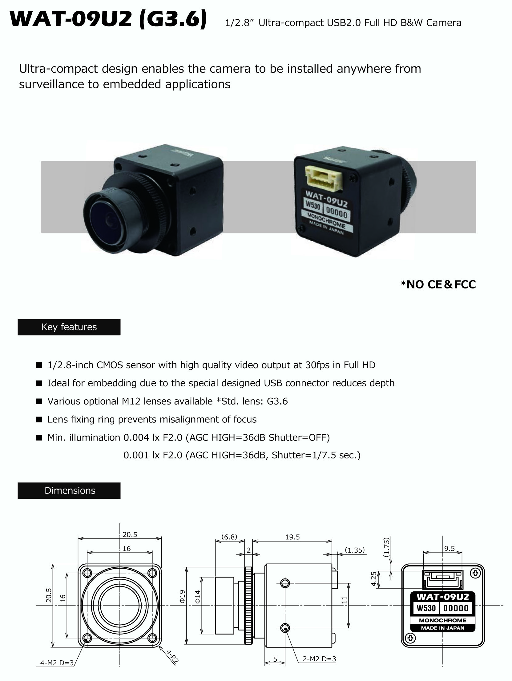 > 新 WAT-09U2(G3.6) 1/2.8英寸 超紧凑型 USB2.0 全高清黑白摄像头