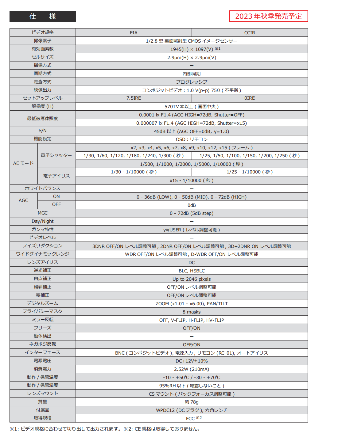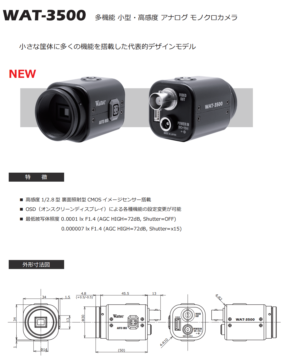 > 新 WAT-3500 1/2.8型小型・高灵敏度单色